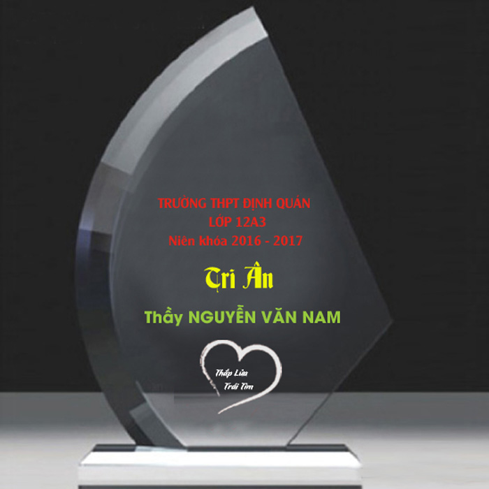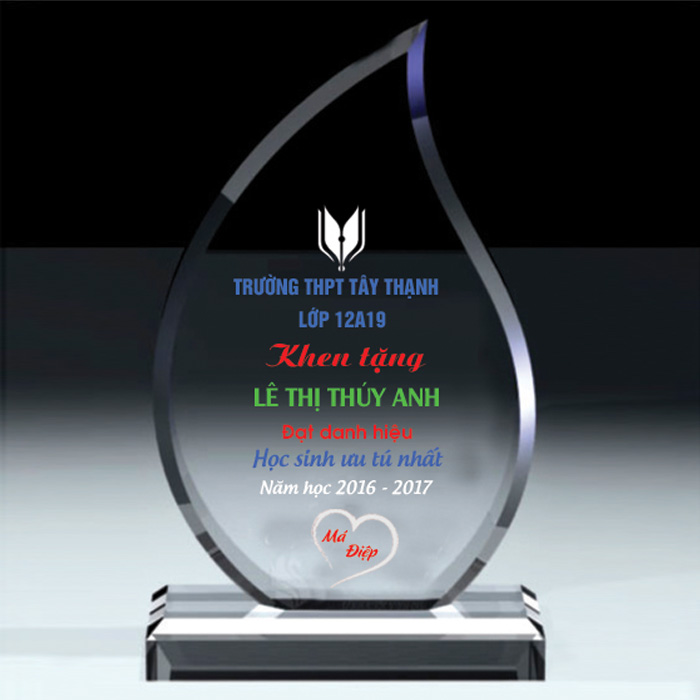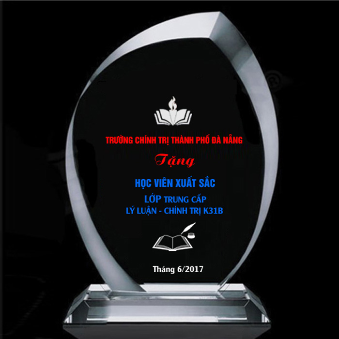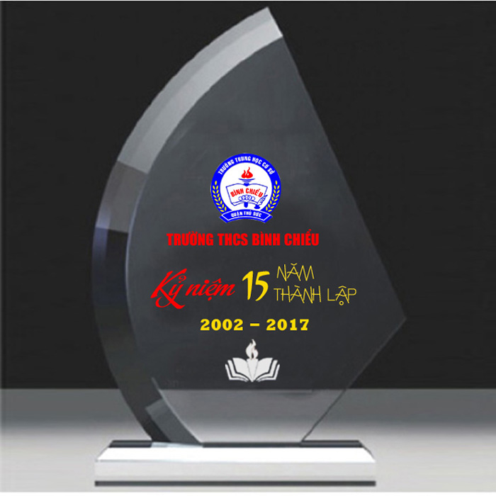 Thiết kế kỷ niệm chương lễ tốt nghiệp theo mẫu riêng, làm từ chất liệu thủy tinh, pha lê, gỗ đồng. Thông thường chỉ cần làm bằng thủy tinh với giá thành rẻ nhất.