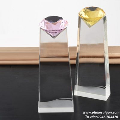 Cúp pha lê màu kim cương, cúp khen thưởng, cúp tôn vinh cao cấp, quà tặng tri ân, mẫu cúp pha lê, kỷ niệm chương giá rẻ. Được làm từ pha lê trong kết hợp thêm các pha lê màu khác. Nội dung in khắc theo từng sự kiện. Cúp pha lê màu kim cương có thể thay đổi kích thước, mẫu mã riêng theo yêu cầu khách hàng.