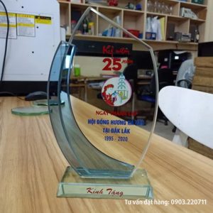 Kỷ niệm chương thủy tinh lưu niệm được làm từ thủy tinh hoặc pha lê, phối thêm các màu khác theo yêu cầu, nội dung khắc hoặc in trực tiếp, kích thước, mẫu mã rất đa dạng. Kỷ niệm chương phù hợp làm quà lưu niệm, tri ân những đóng góp của cá nhân, nhân viên.